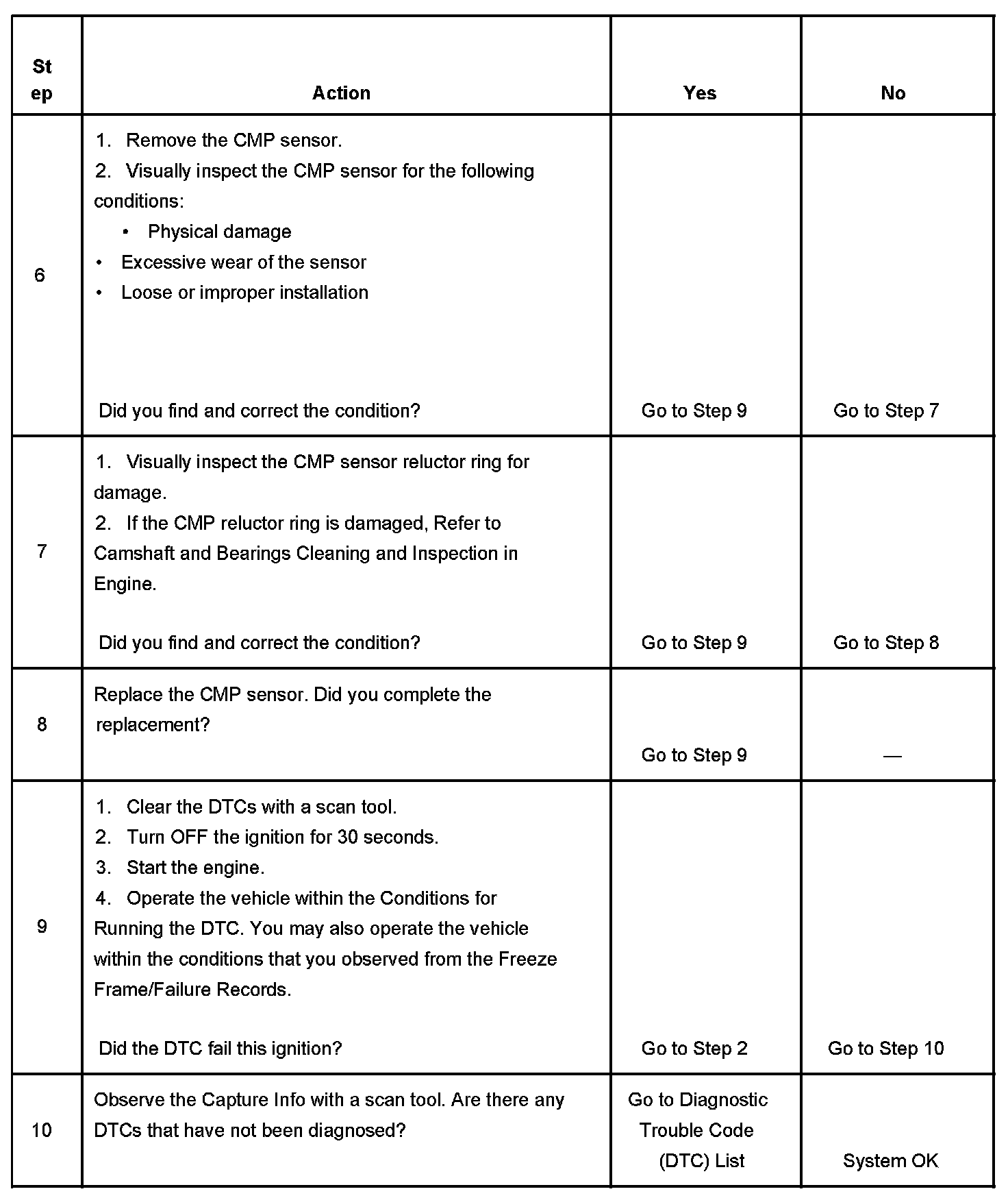 6. Damage to the face of the sensor could indicate foreign material passing between the CMP sensor and the reluctor wheel. This condition would cause this DTC to set. Damage to the reluctor wheel would affect the CMP sensor output.