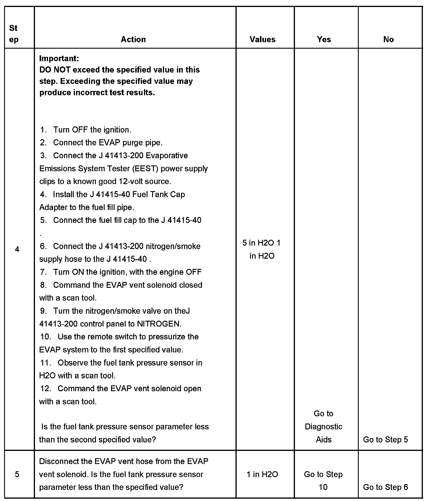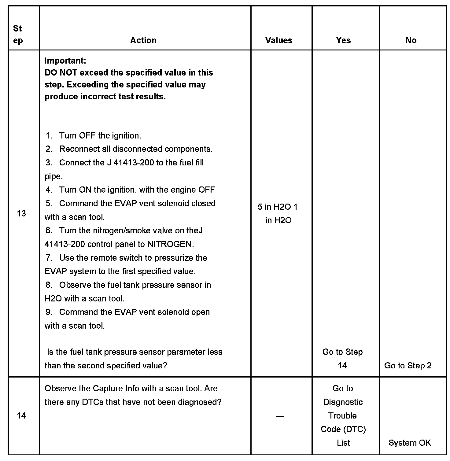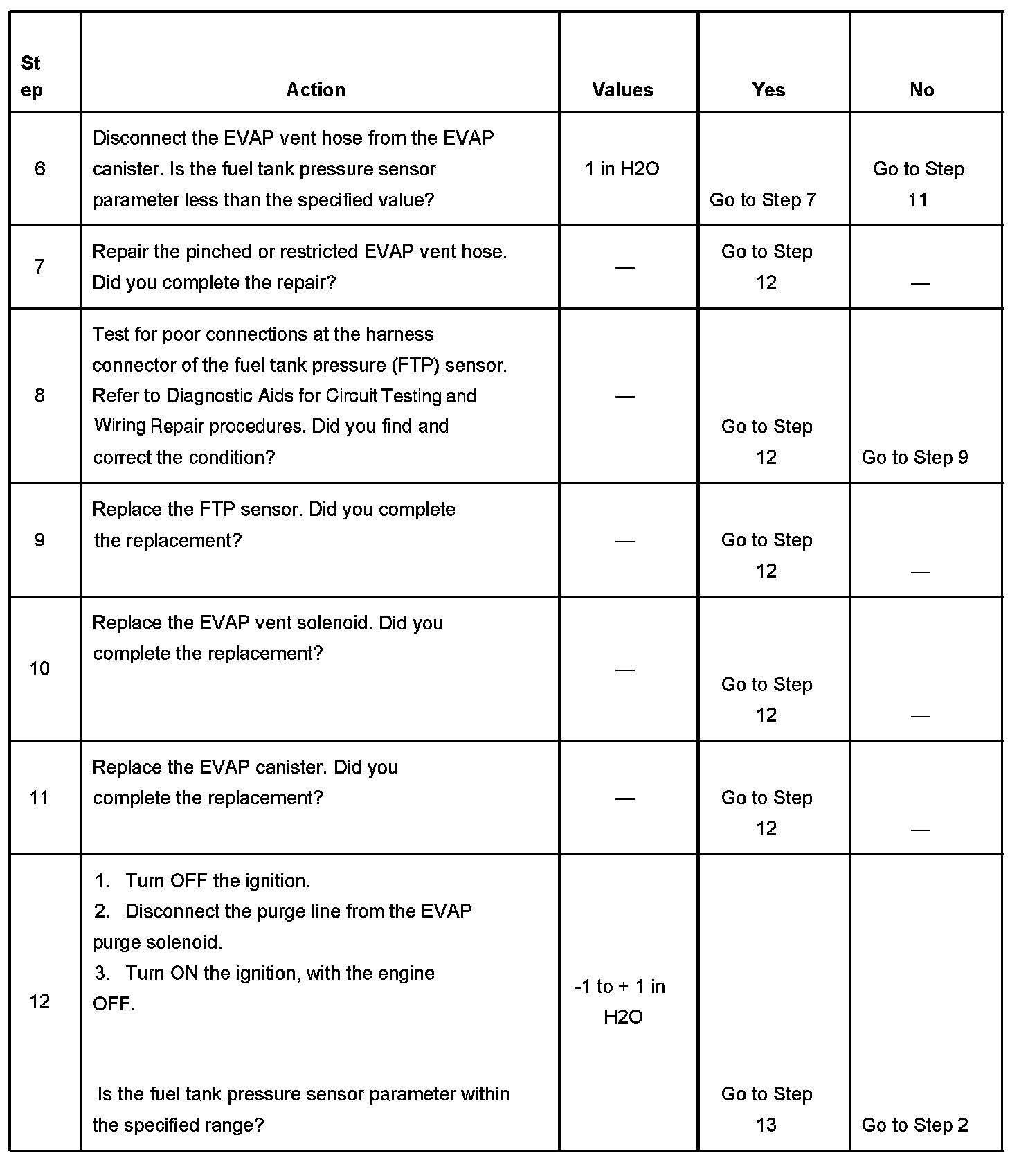 - The fuel tank pressure sensor is less than -10 inches H2O.
