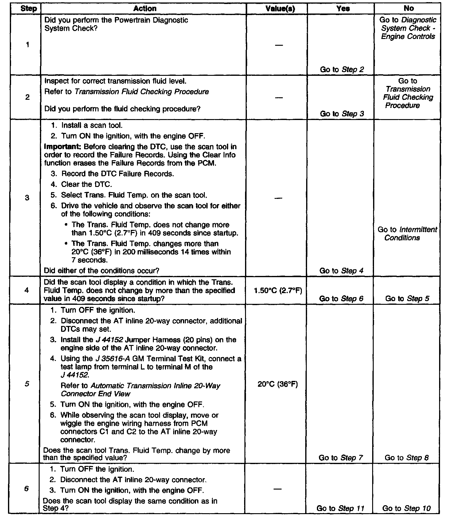 1. If any ECT DTC's P0117 or P0118 are set, then the default TFT is equal to 135°C (275°F).