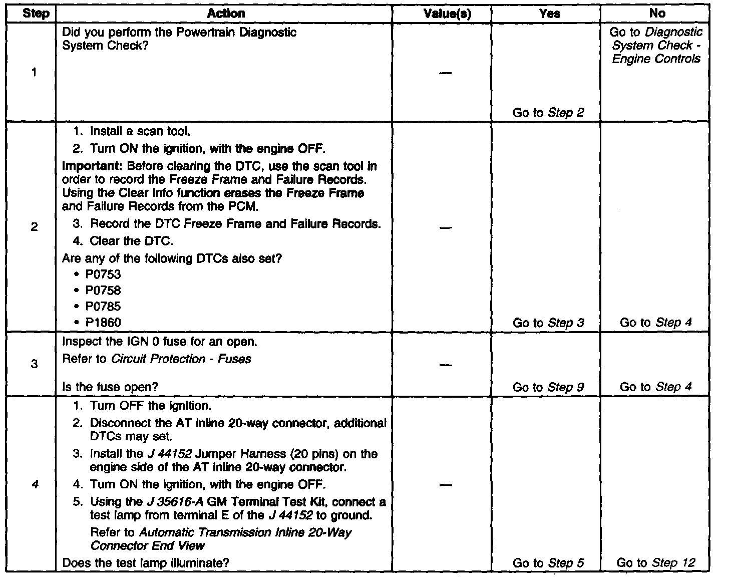 ^ The PCM cancels the DTC default actions when the fault no longer exists and/or the ignition switch is OFF long enough in order to power down the PCM.