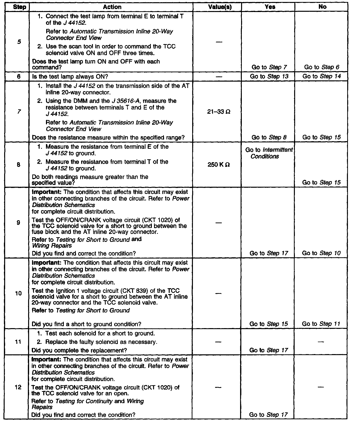 7. This step tests the resistance of the TCC solenoid valve and the automatic transmission (AT) wiring harness assembly.