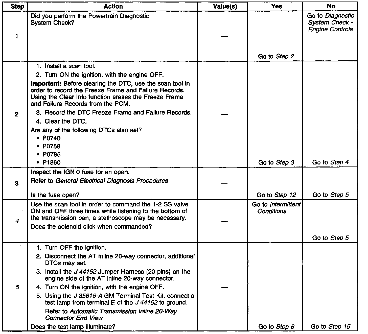 5. This step tests for power to the 1-2 SS valve from the ignition through the fuse.