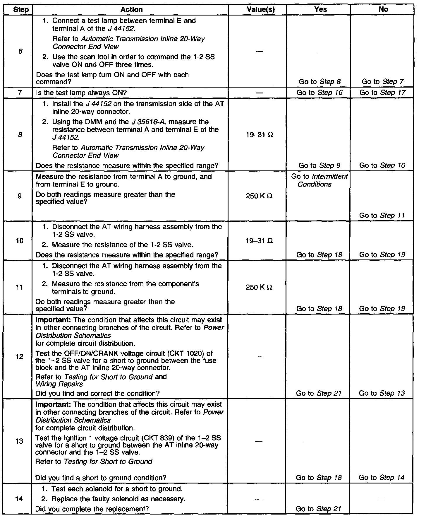 8. This step measures the resistance of the AT wiring harness assembly and of the 1-2 SS valve.