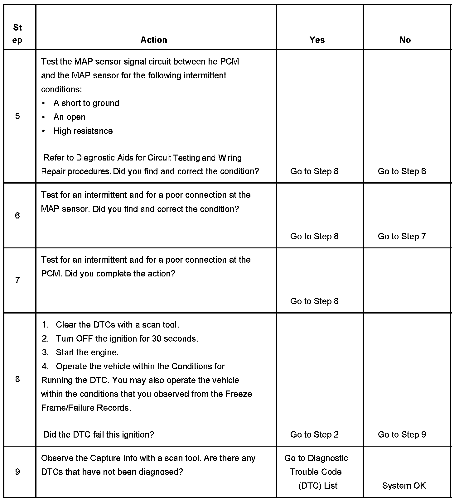 The PCM detects that the MAP sensor voltage is less than 0.1 volt for more than 6 seconds.