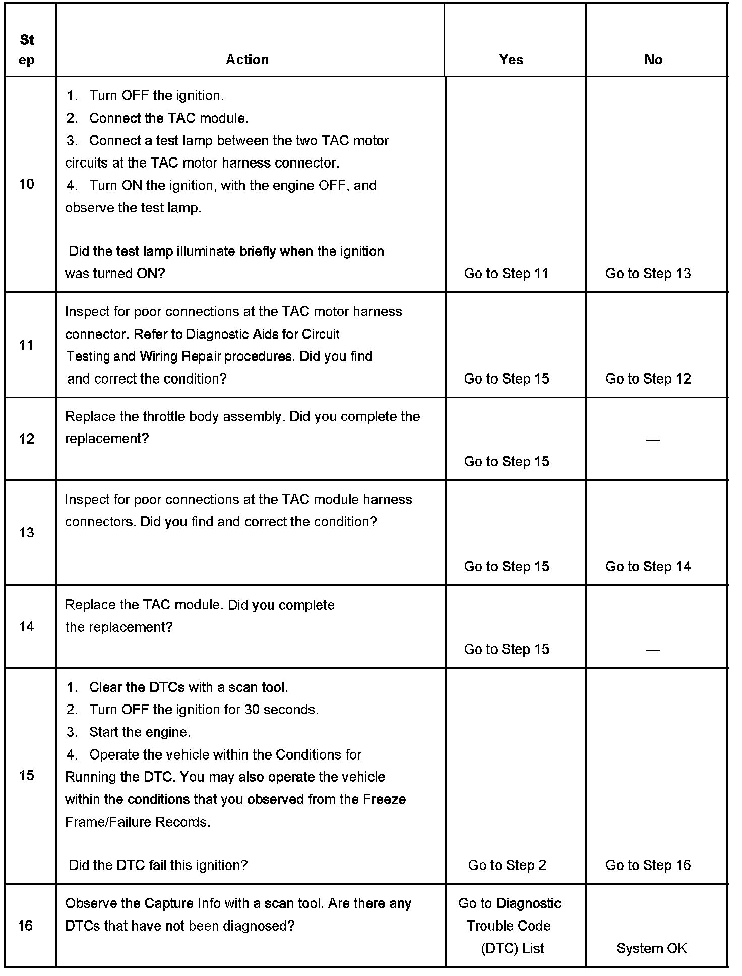 - When the TAC module detects a condition within the TAC system, more than 1 TAC system related DTC may set. This is due to the many redundant tests run continuously on this system. Locating and repairing an individual condition may correct more than 1 DTC. Disconnecting components during testing may set additional DTCs. Remember this if you review the stored information in Capture Info.