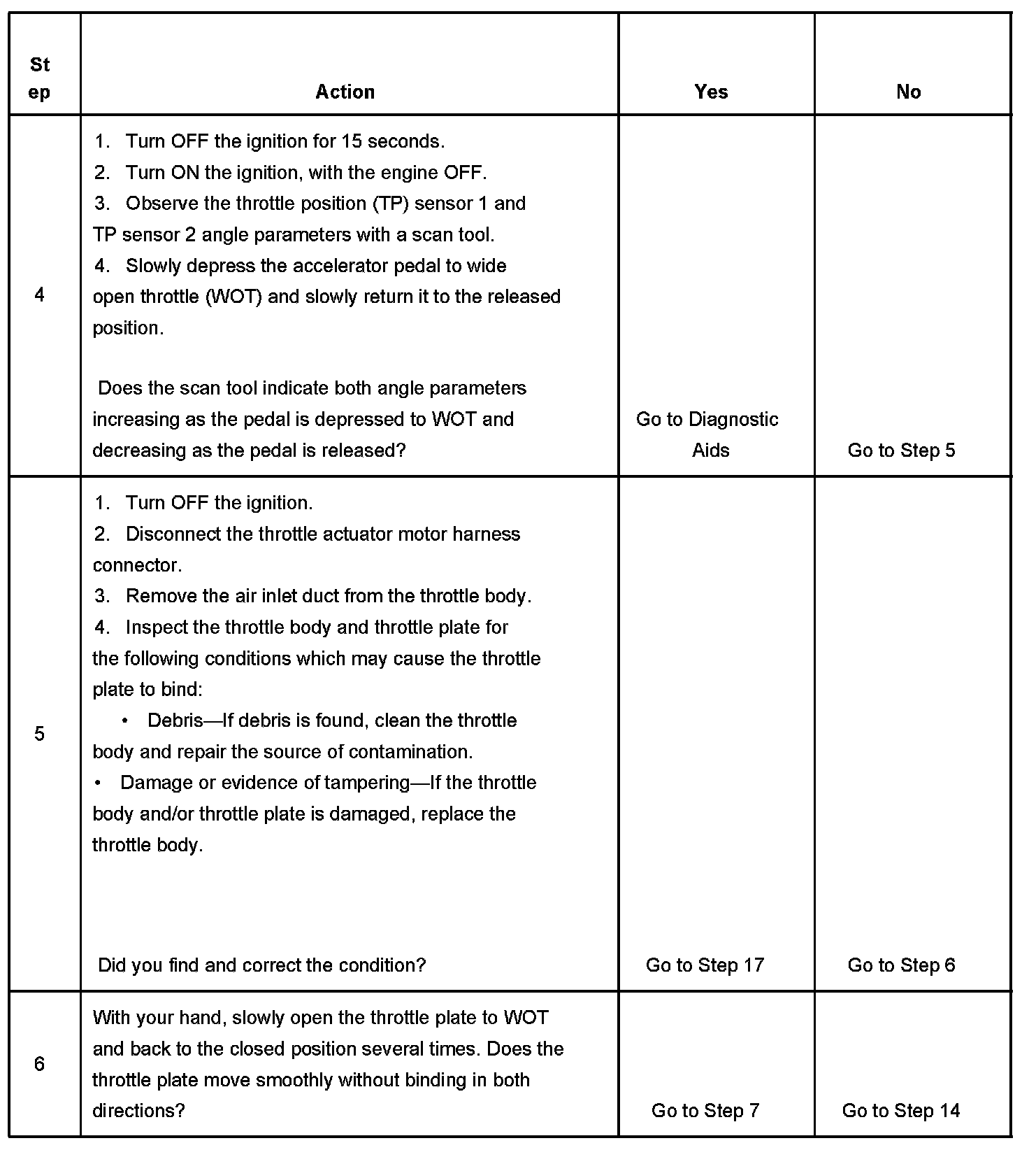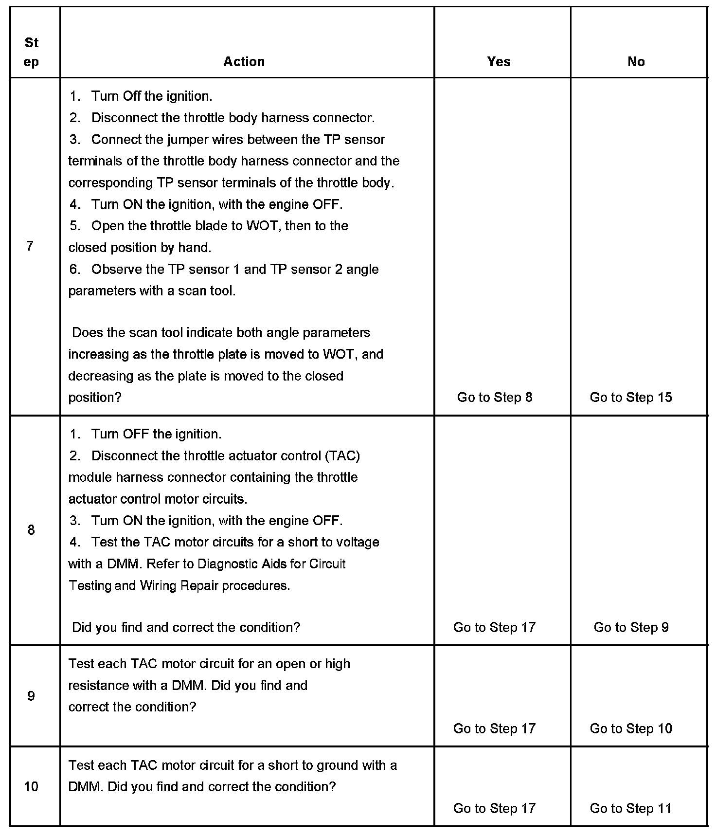 7. If the TP indicated angle does not follow the movement of the throttle blade and no TP sensor DTCs are set, there is a mechanical condition with the throttle shaft or the TP sensor.