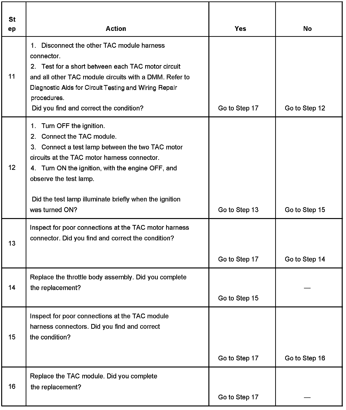 CIRCUIT DESCRIPTIONThe predicted throttle position (TP), based on accelerator pedal position (APP) and other limiting factors, is compared to the actual throttle position. The two values should be within a calibrated range of each other. Both the powertrain control module (PCM) and the throttle actuator control (TAC) module redundantly monitor the predicted and actual throttle position. This DTC sets if the PCM detects an out of range condition between the predicted and actual throttle position.
