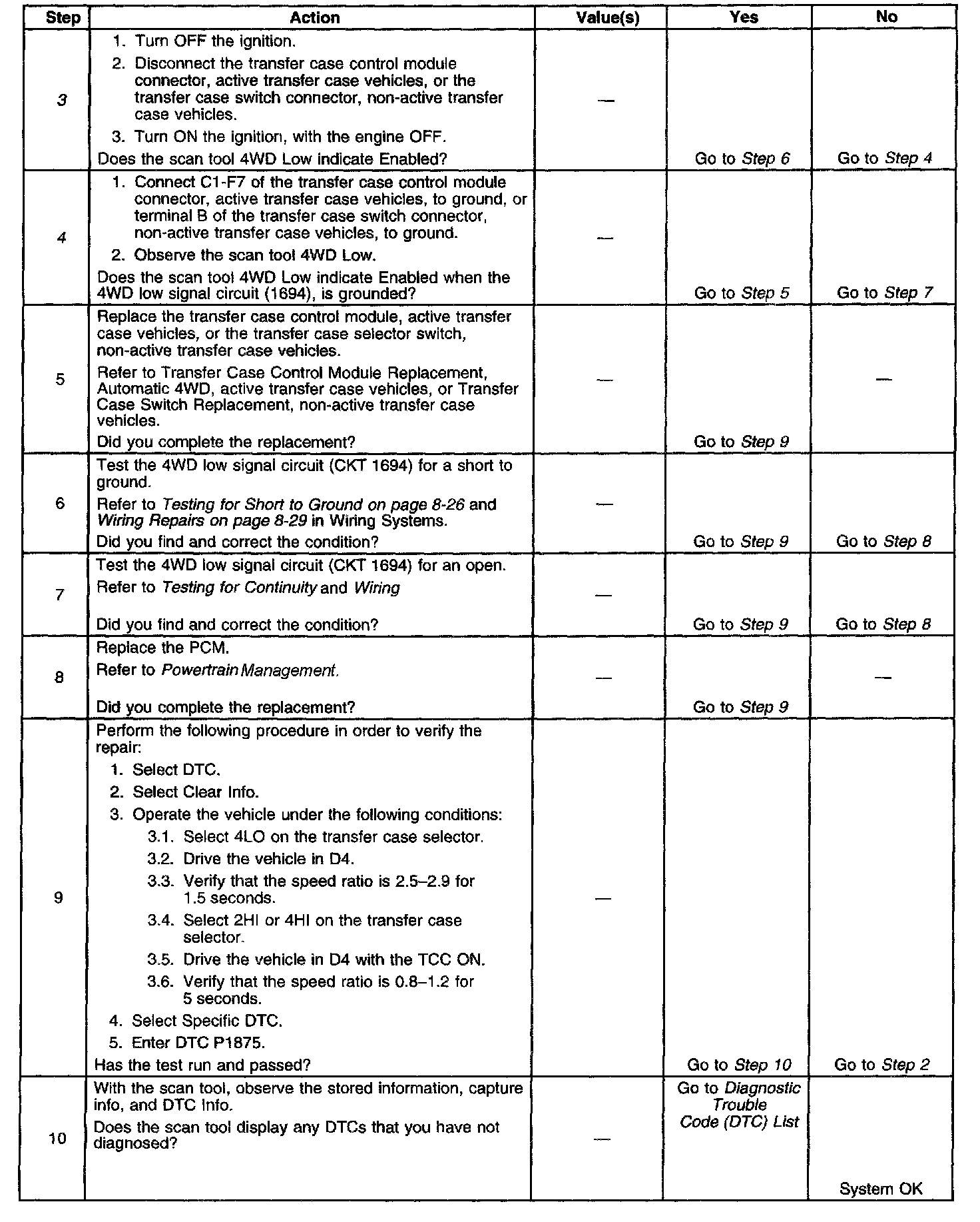 3. This step tests for a short to ground in the 4WD low signal circuit (CKT 1694).