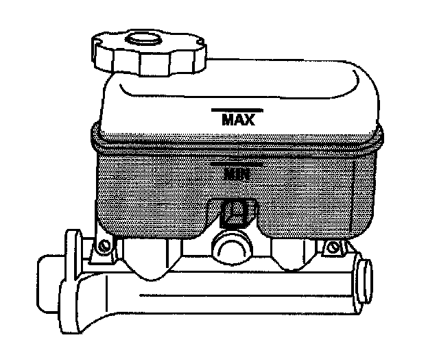 2. If the brake fluid is midway between the maximum-full point and the minimum allowable level, no brake fluid needs to be removed from the reservoir before proceeding.