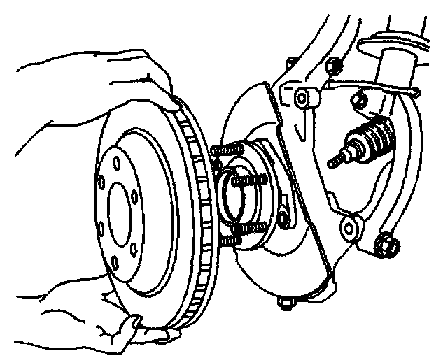Important: if the brake rotor is not going to be replaced but just removed from the front hub, mark the relationship of the brake rotor and a wheel stud.