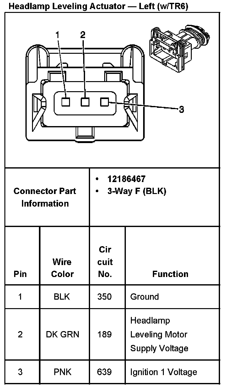 Headlamp Leveling Actuator - Left (With RPO Code TR6):