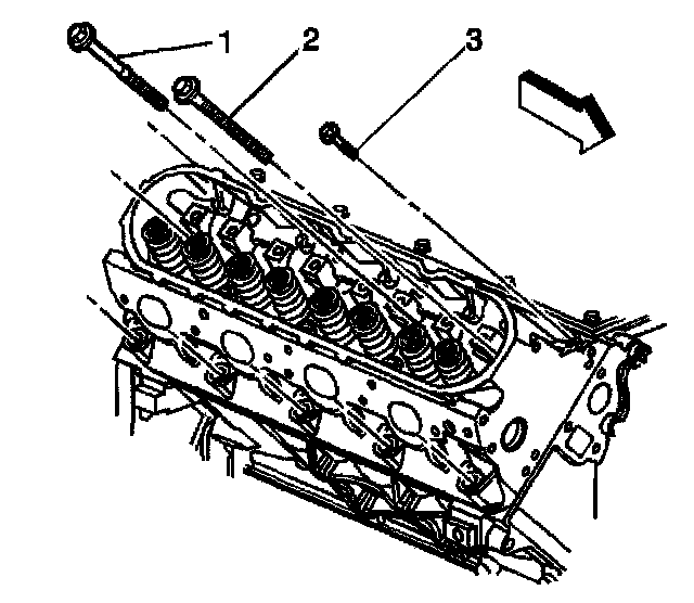 6. Remove and discard the cylinder head bolts (1, 2, 3)