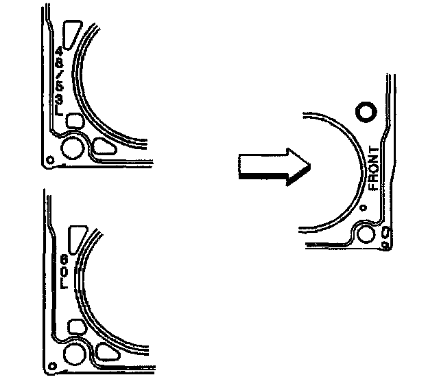 5. When properly installed, with FRONT on the right side, the tab on the cylinder head gasket should be located right center or closer.