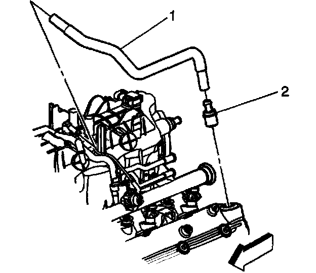 1. Remove the Positive Crankcase Ventilation (PCV) hose (1) and valve (2).