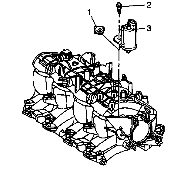 4. Remove the Evaporative Emission (EVAP) solenoid (3), bolt (2), and isolator (1).
