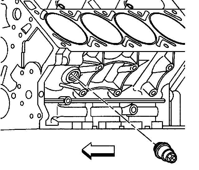 5. Remove the engine block left front oil gallery plug.