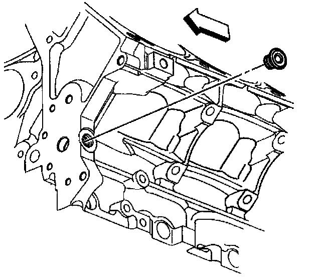 6. Remove the engine block left rear oil gallery plug.