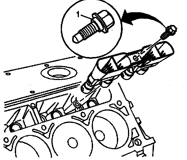 4. Install the valve lifter guide bolt (1).