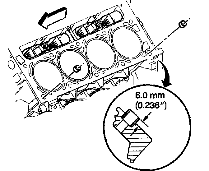 NOTICE: Clean all dirt, debris, and coolant from the engine block cylinder head bolt holes. Failure to remove all foreign material may result in damaged threads, improperly tightened fasteners or damage to components.
