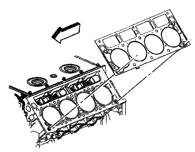5. Install the NEW left cylinder head gasket onto the locating pins.