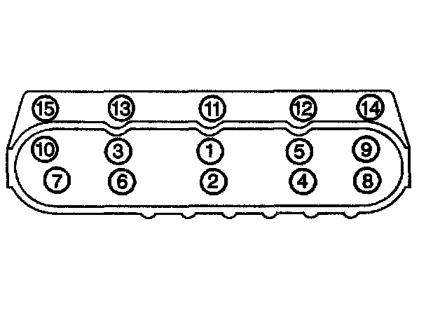 8.4. Tighten the M8 cylinder head bolts (1 1,12,13,14,15) to 30 Nm (22 ft. lbs.). Begin with the center bolt (11) and alternating side-to-side, work outward tightening all of the bolts.