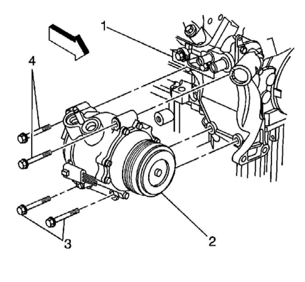 4. Install the upper compressor mounting bolts into the compressor mounting bracket.