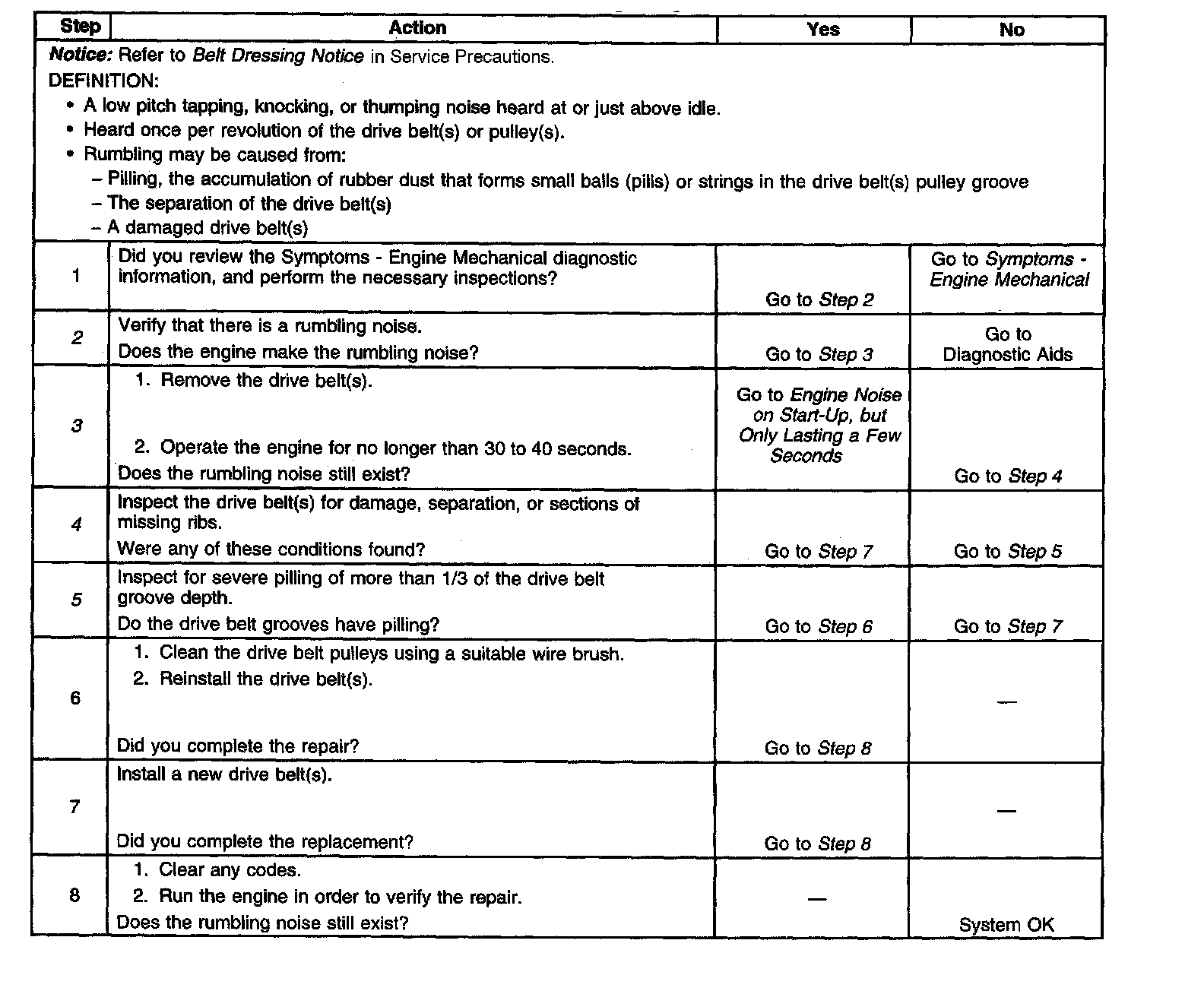 Drive Belt Rumbling DiagnosisDiagnostic Aids