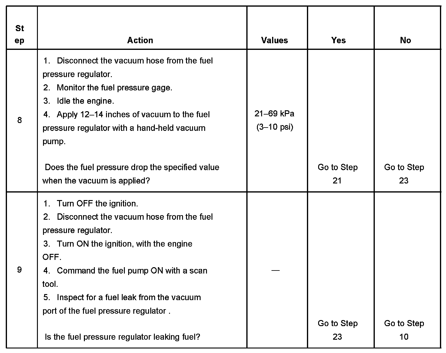 6. This step tests the fuel pressure regulator.