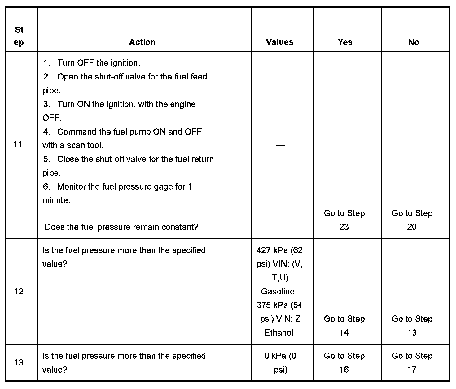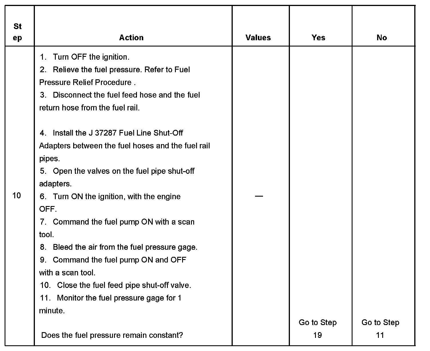 11. This step tests for a leaking fuel injector or for a leaking fuel pressure regulator.