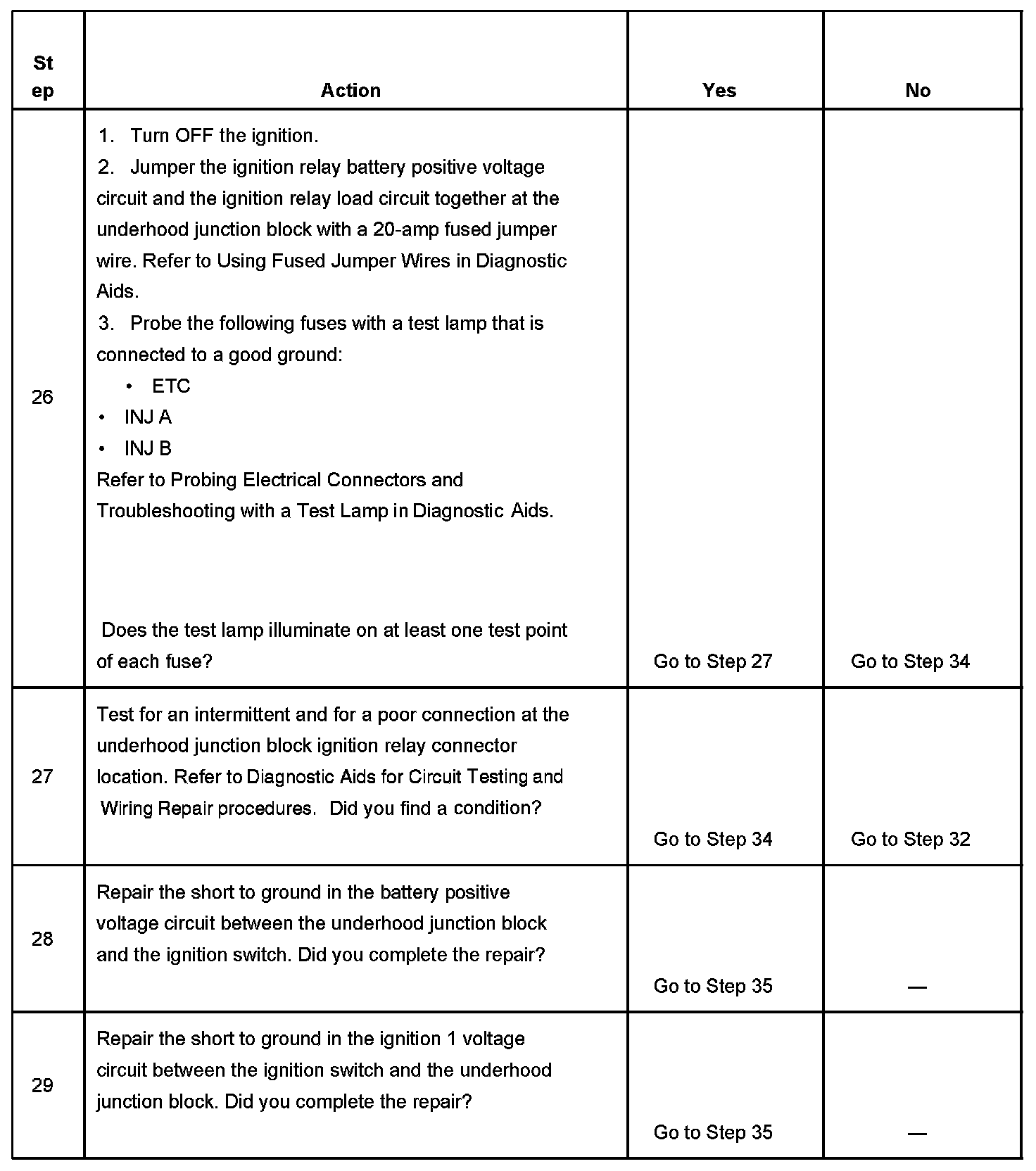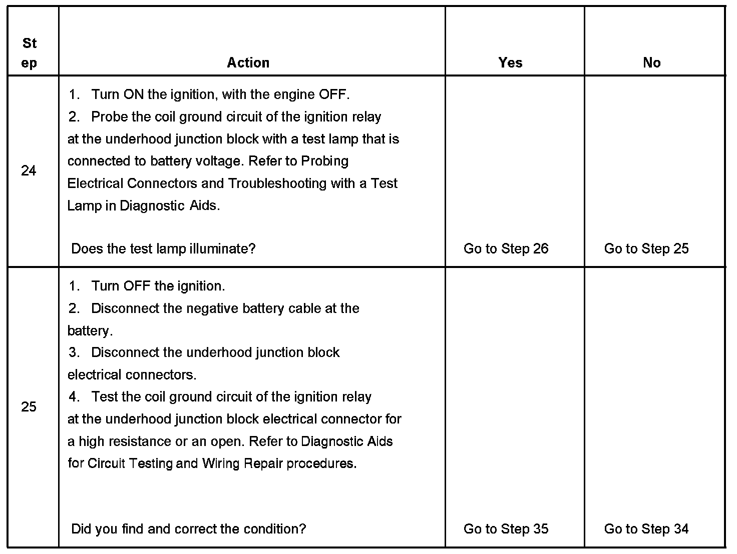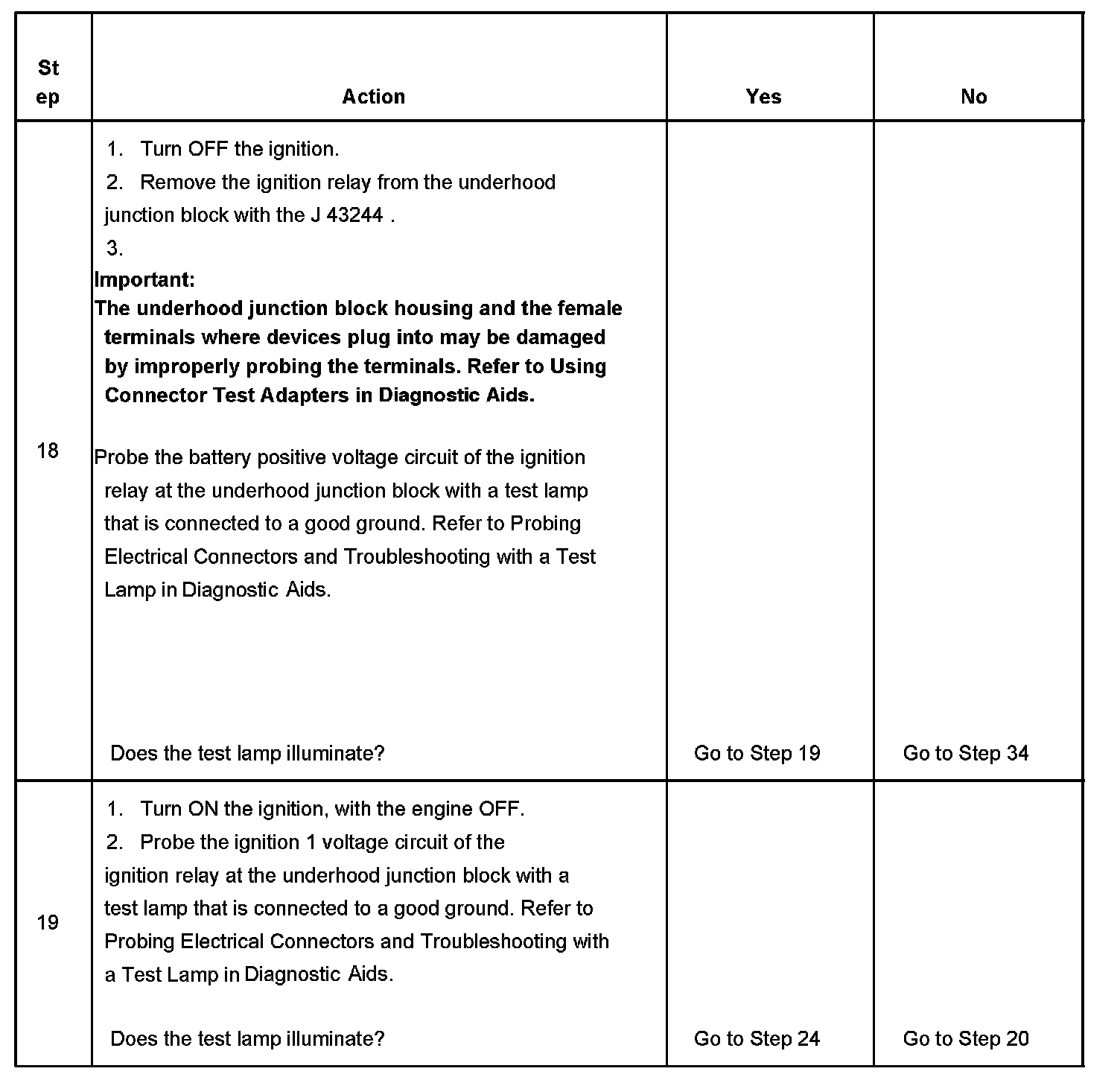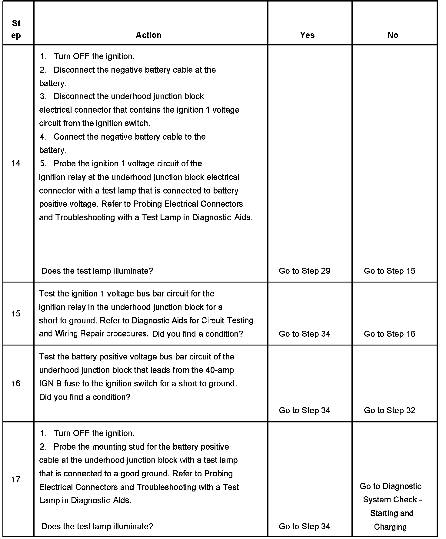 The ignition relay table assumes that the vehicle battery is fully charged. Refer to Battery Inspection/Test in Starting and Charging. Component Tests and General Diagnostics