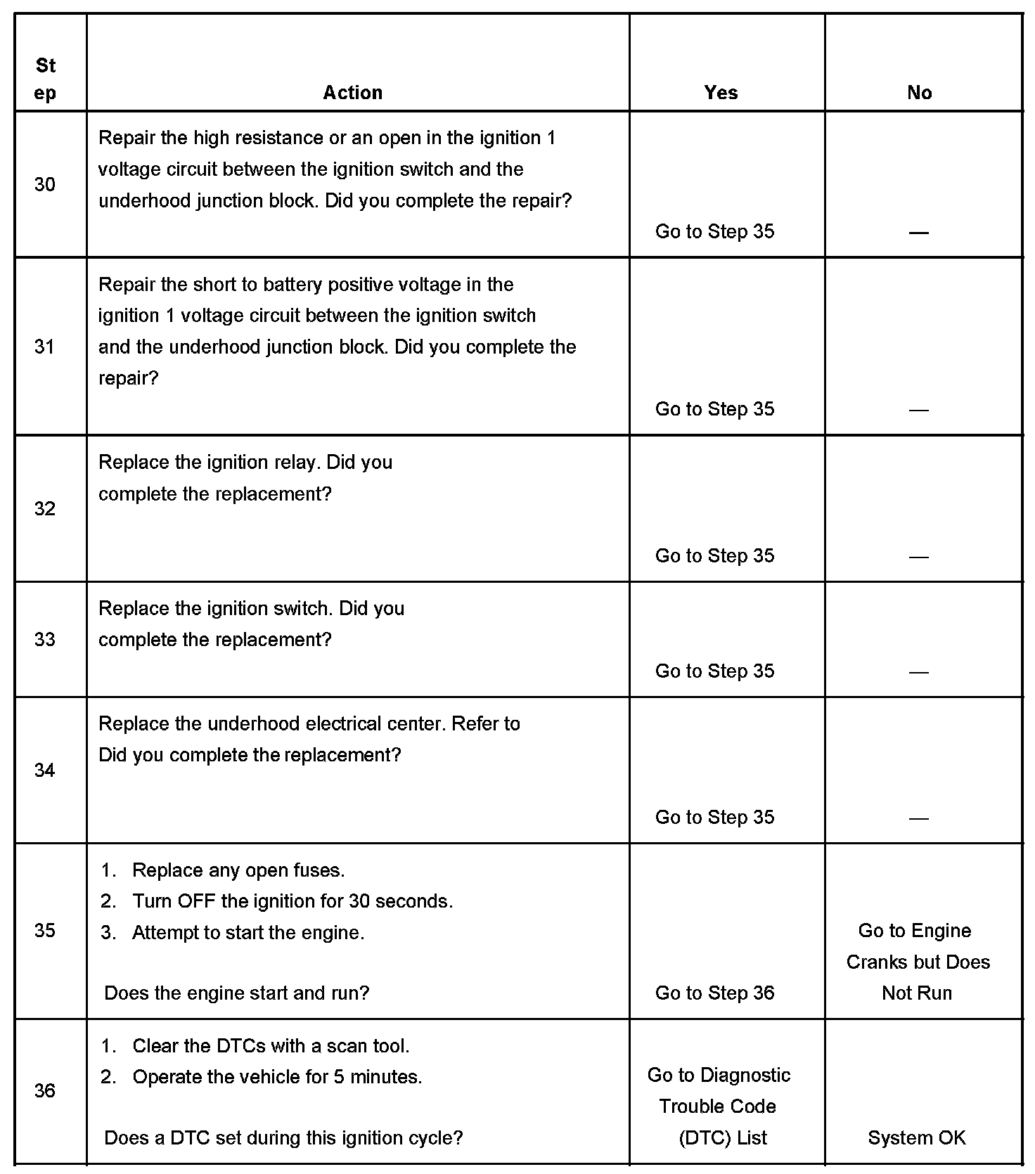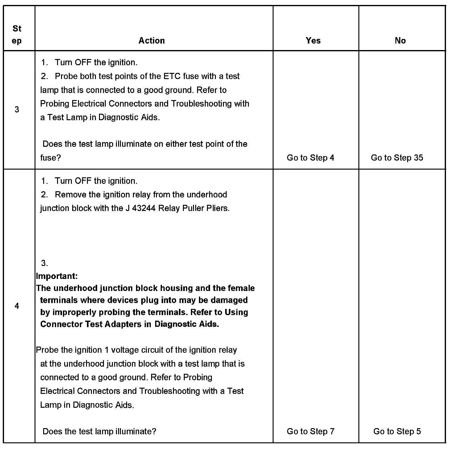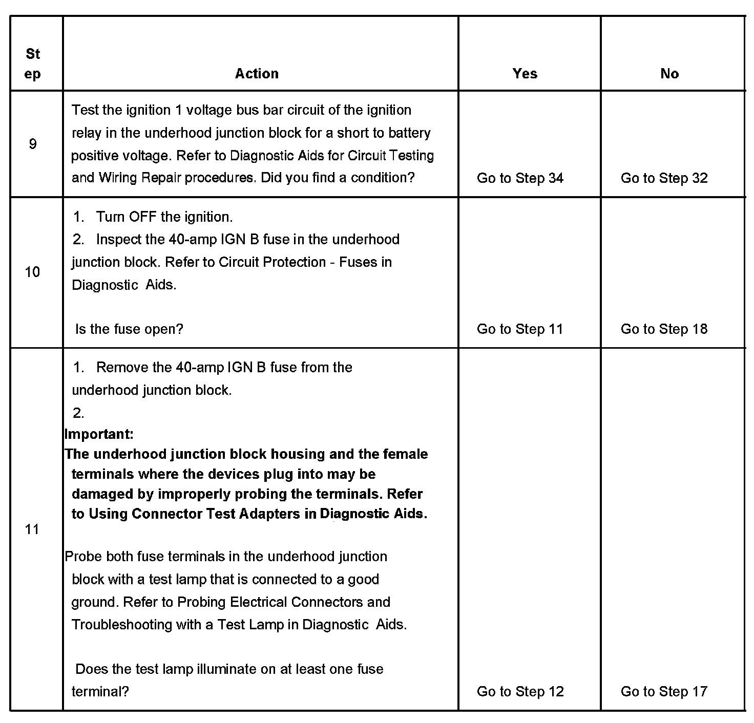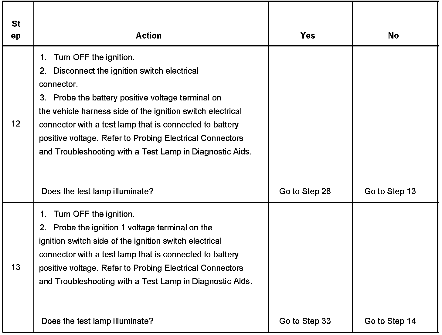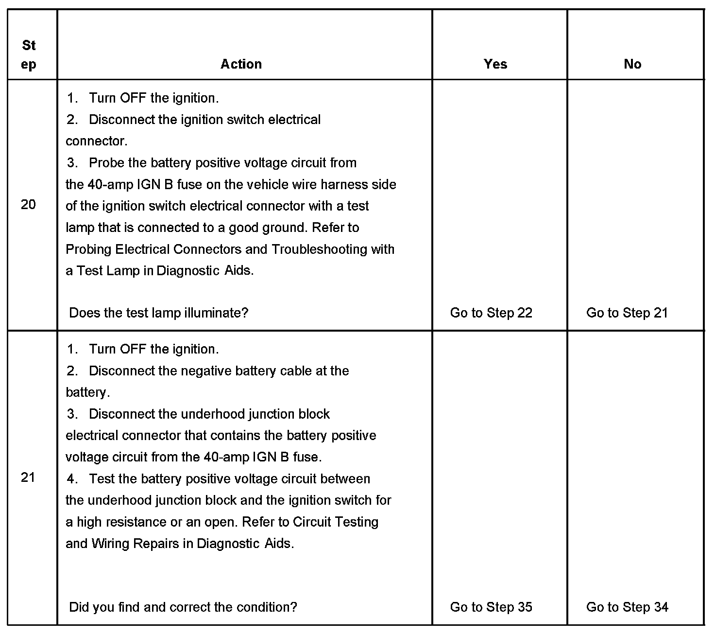 The ignition relay table assumes that the vehicle battery is fully charged. Refer to Battery Inspection/Test in Starting and Charging. Component Tests and General Diagnostics