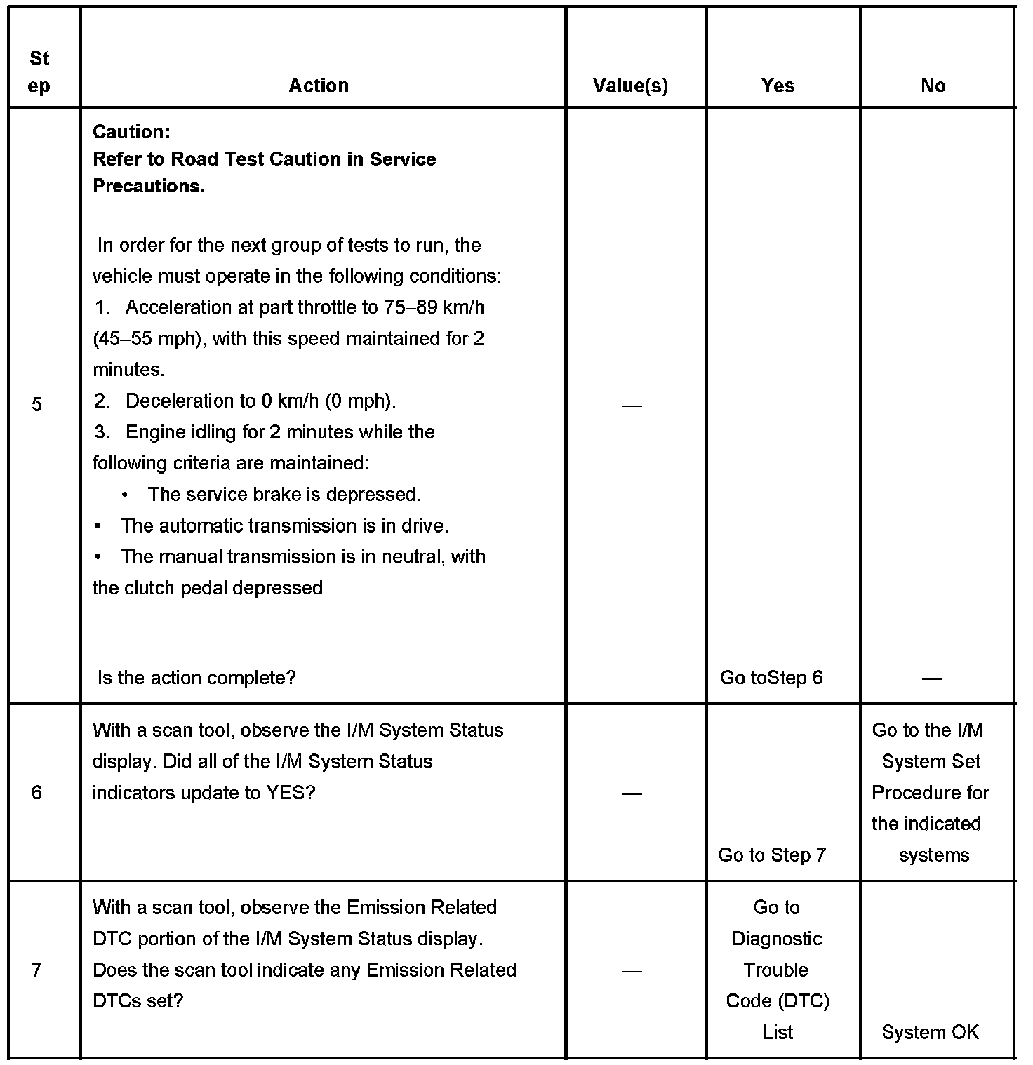 7. The I/M System Status only reports on whether a diagnostic has run, not the outcome of the test. If any emission-related DTC sets after the tests are complete, the DTC will require diagnosis.