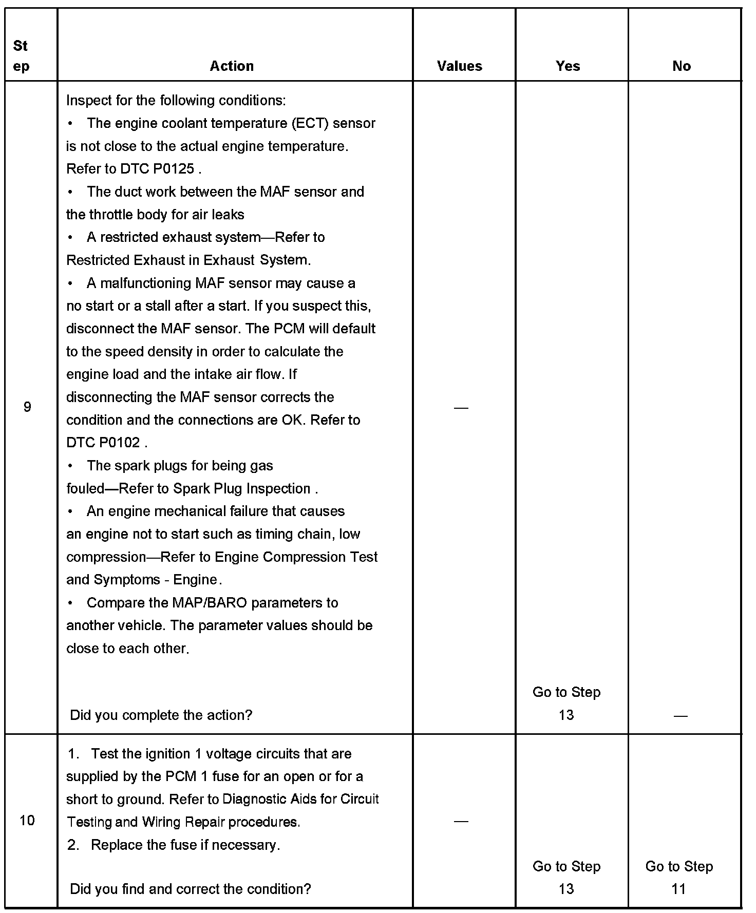 DESCRIPTIONThe Engine Cranks but Does Not Run diagnostic table is an organized approach to identifying a condition that causes an engine to not start. The diagnostic table directs the service technician to the appropriate system diagnosis. The diagnostic table assumes the following conditions are met: