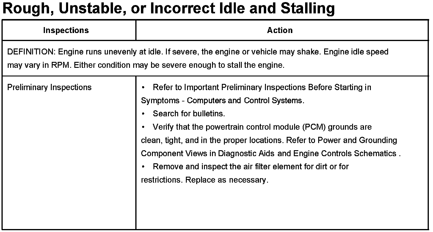 Rough, Unstable, or Incorrect Idle and Stalling