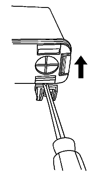 6. Remove the EVAP canister from the tabs of the canister bracket by inserting a flat head screwdriver into the center slots of the tabs as indicated in the illustration.