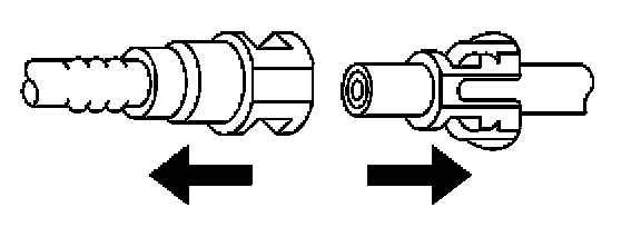 6. This step applies to Sliding Retainer style connectors ONLY. Release the fitting by pressing on one side of the release tab causing it to push in slightly. If the tab doesn't move try pressing the tab in from the opposite side. The tab will only move in one direction