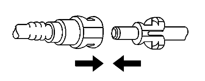 2. Push both sides of the quick-connect fitting together in order to cause the retaining feature to snap into place.