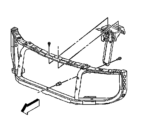 4. Remove the bolts that retain the hood latch support to the radiator support.