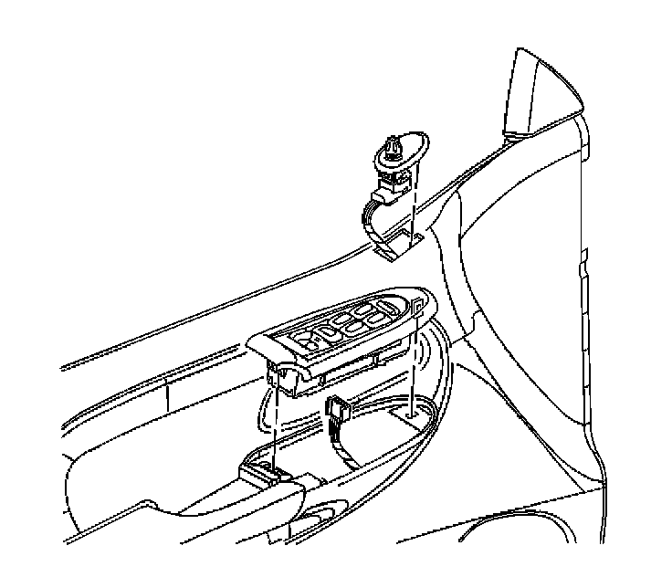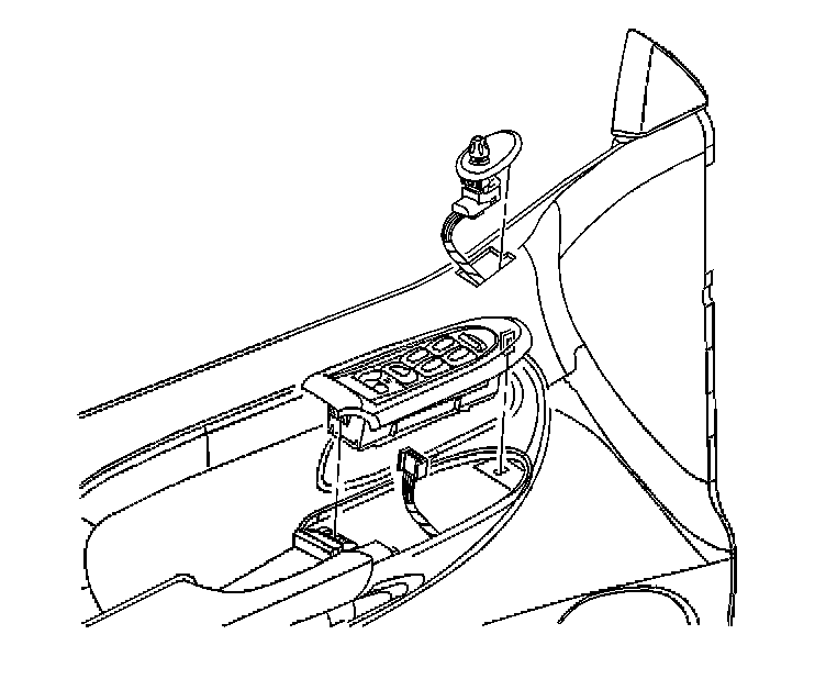 1. Carefully use a flat-bladed tool in order to release the outside mirror switch retaining tabs from the trim panel.