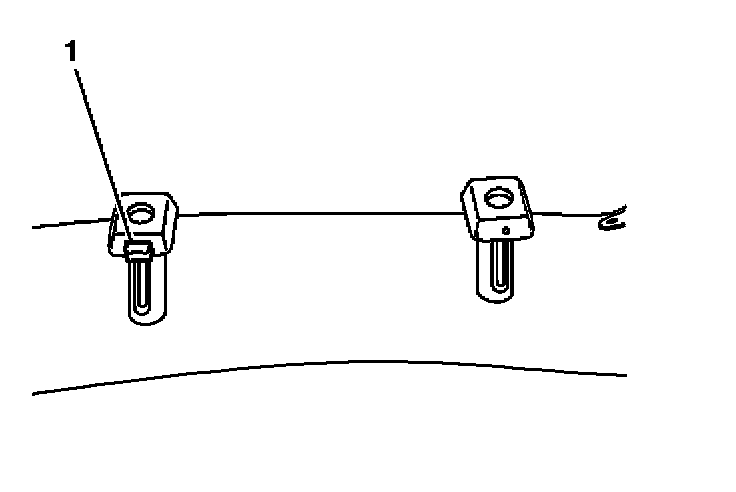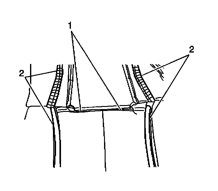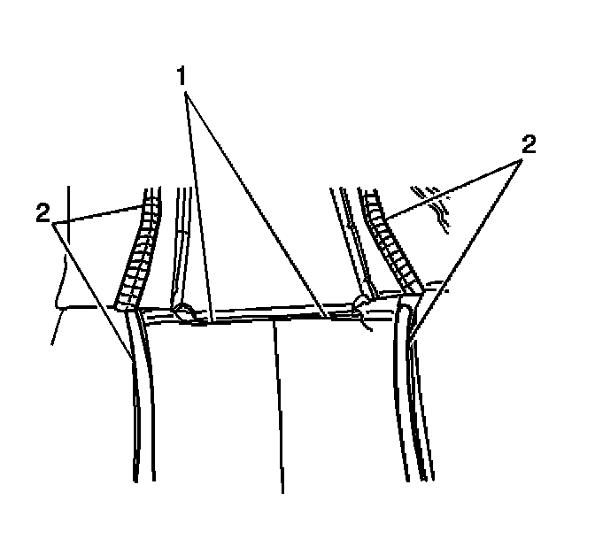 8. Install the J-strip (1) to the seat adjuster cross bar (2).