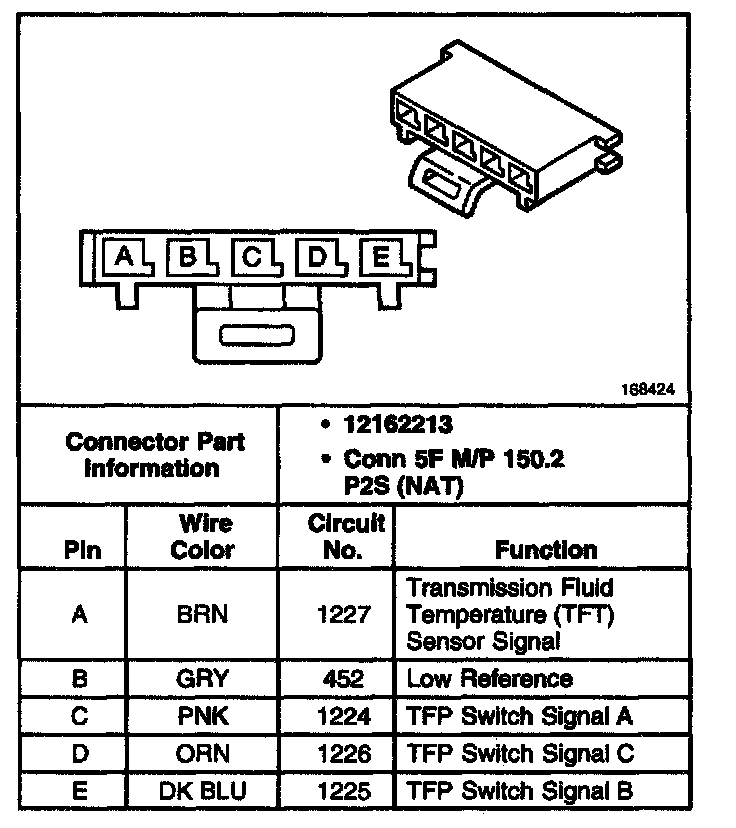 Automatic Transmission Fluid Pressure (TFP) Manual Valve Position Switch Connector, Wiring Harness Slde: