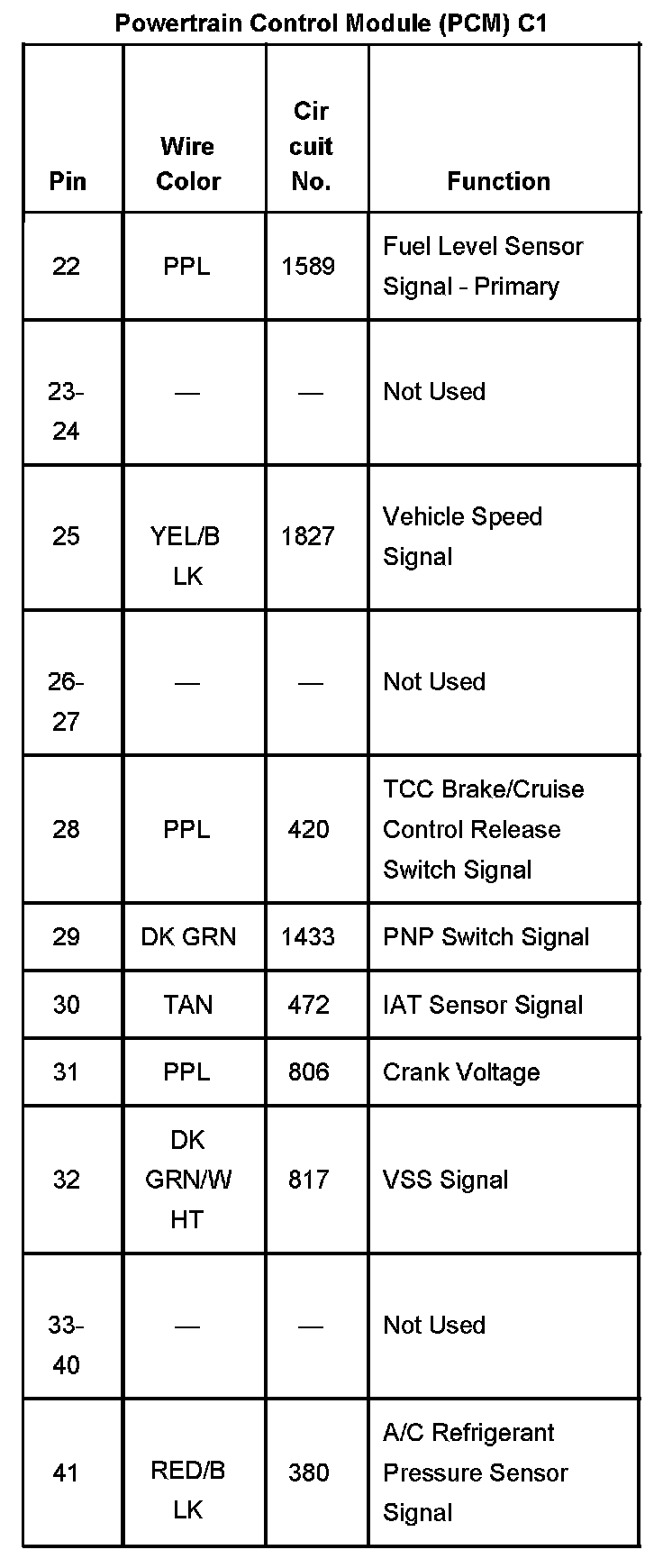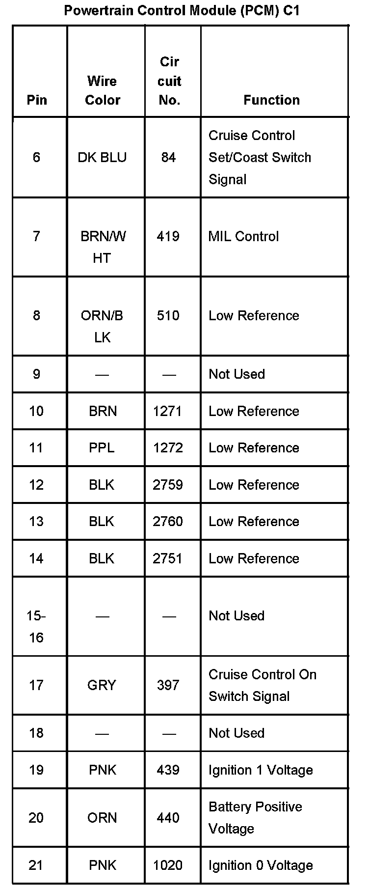 Powertrain Control Module (PCM) C1 Part 1: