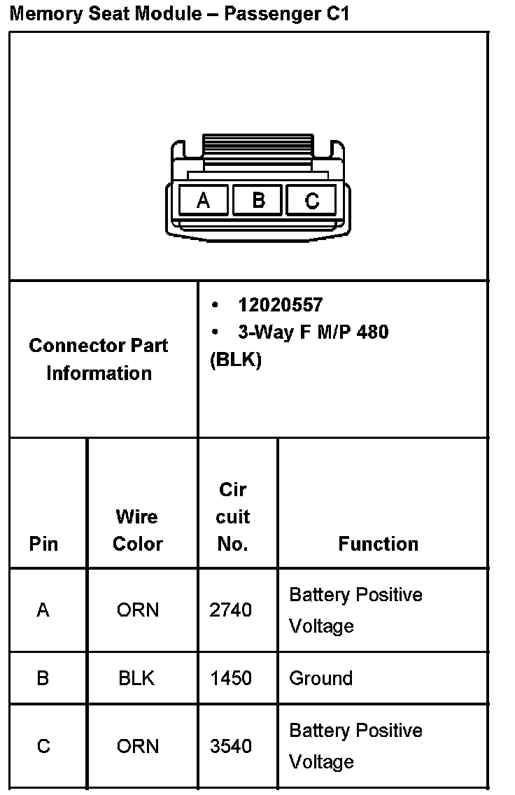Memory Seat Module - Passenger C3 Part 1: