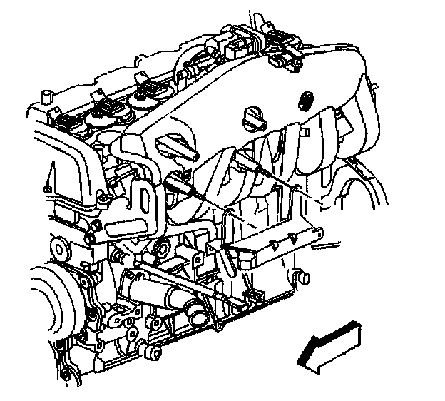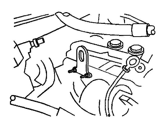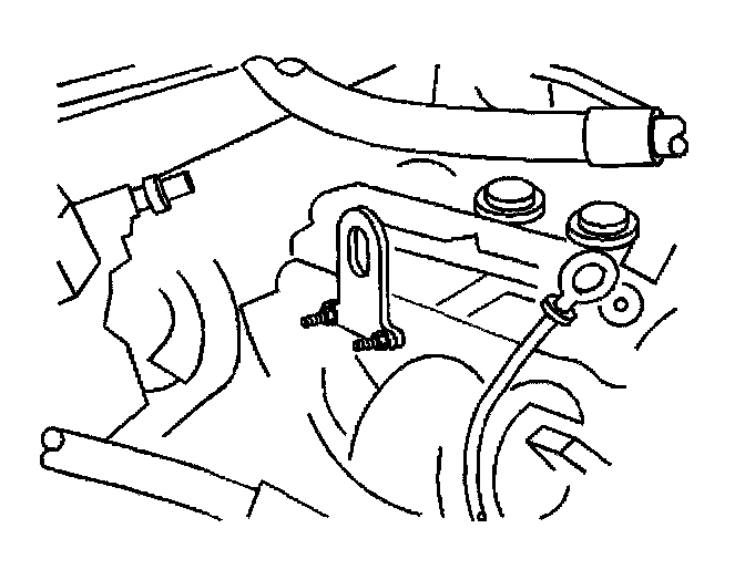 48. Install the transmission filler tube bracket to AIR adapter stud and secure the bracket with the nut.