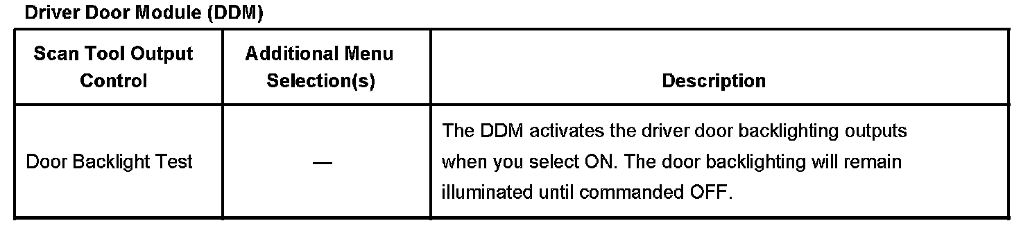 Scan Tool Output Controls - Driver Door Module (DDM)