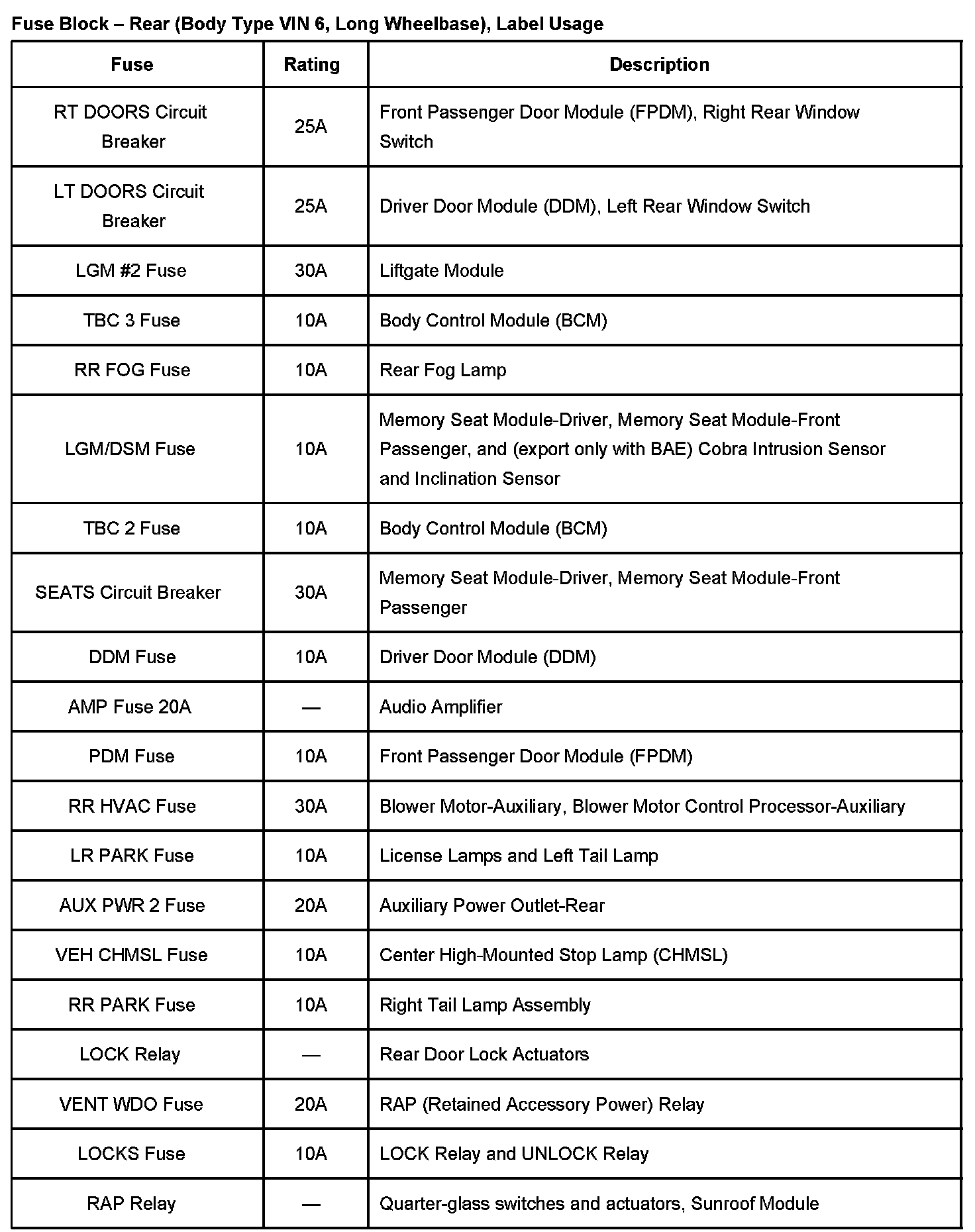 Fuse Block - Rear (Long Wheelbase)