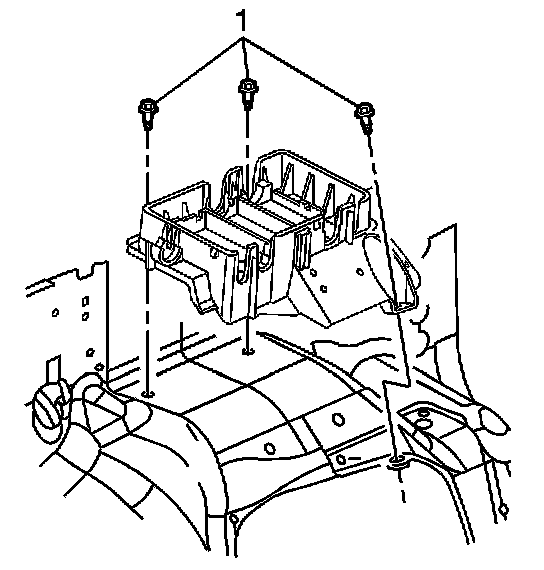 5. Install the fuse relay center cover (1) over the relay center bolts. Press downward to engage the tabs.