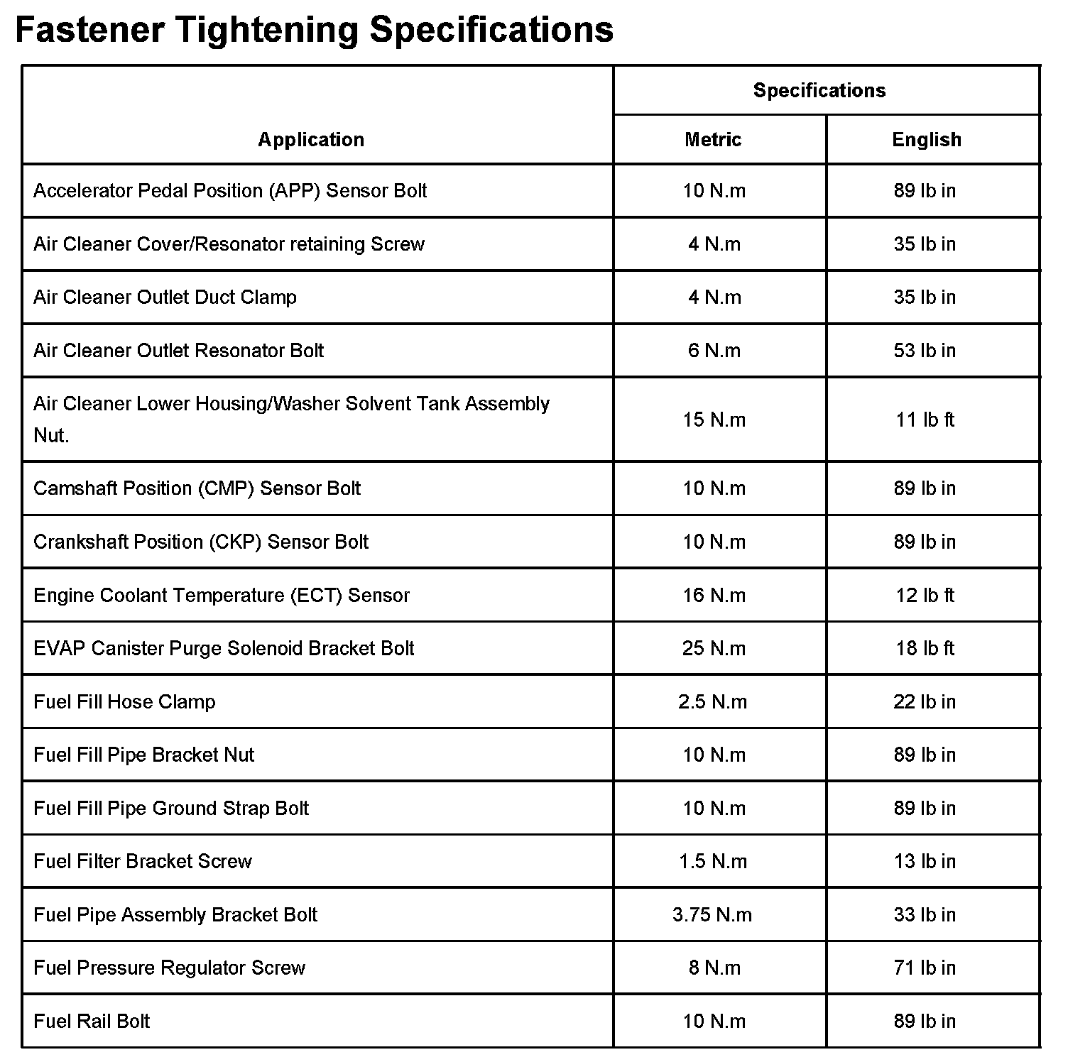 Fastener Tightening Specifications Part 1: