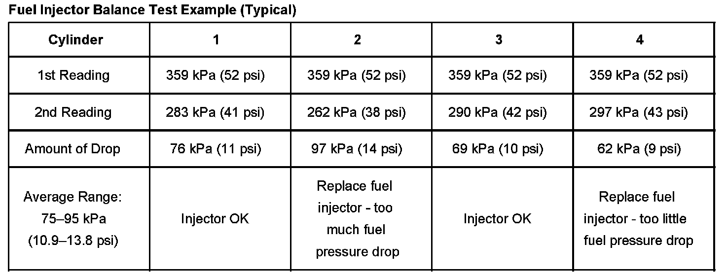 SYSTEM DESCRIPTIONFuel Injector Balance Test Example (Typical):