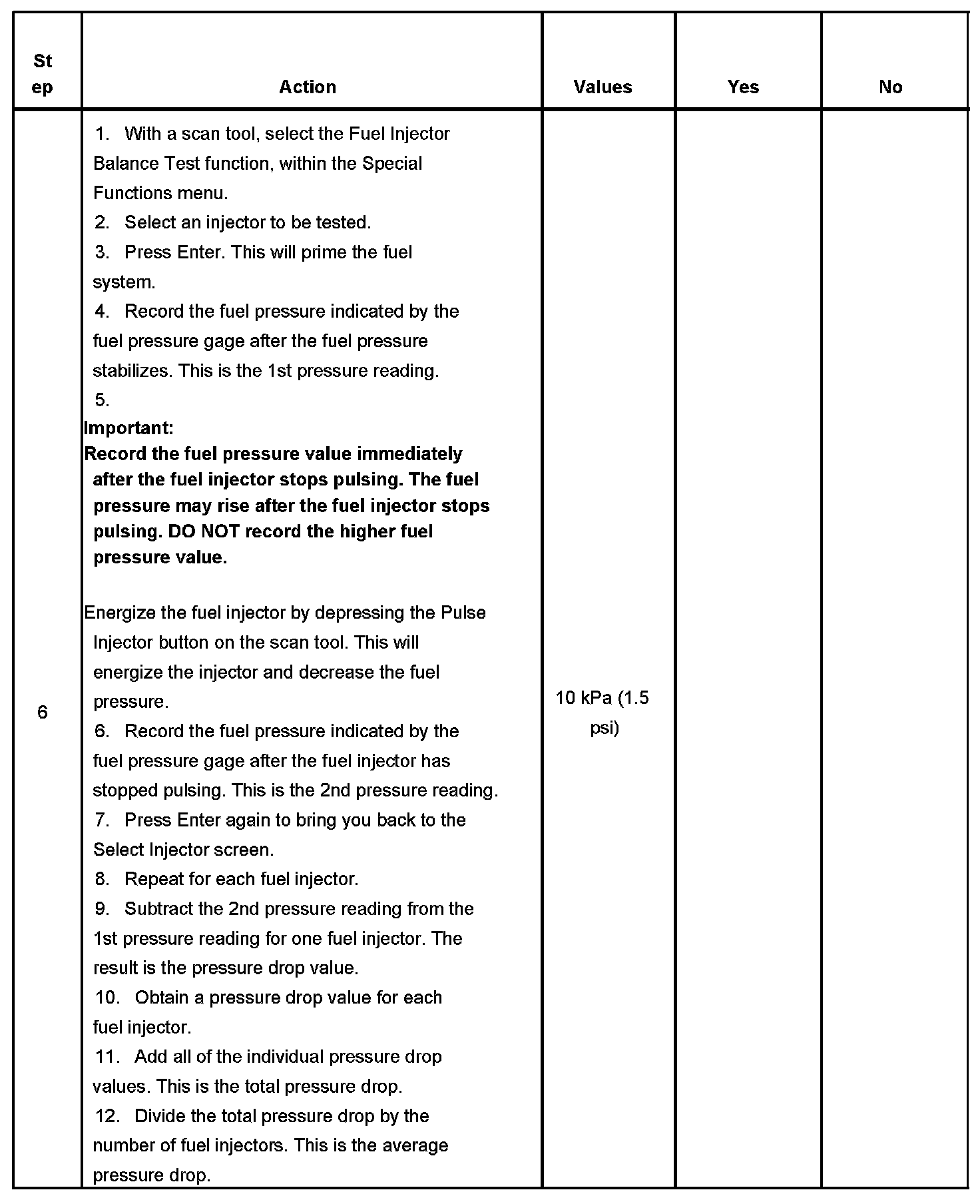 The scan tool is first used to energize the fuel pump relay. The scan tool is then used to pulse each injector for a precise amount of time allowing a measured amount of fuel into the manifold. This causes a drop in system fuel pressure that can be recorded and used to compare each injector.